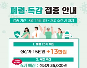 폐렴·독감 예방접종 안내 (✨폐렴20가 신규 입고✨)