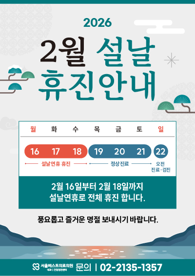 ※ 접수 마감 : 30분 전 (당일 내원 상황에 따라 변동 가능)